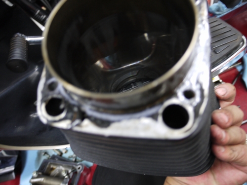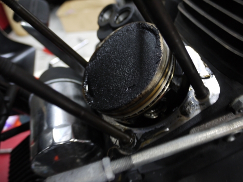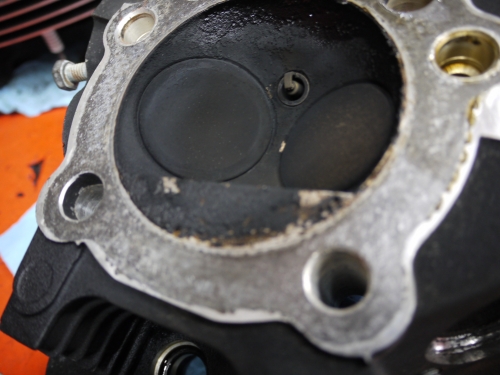 シリンダーを外したところです、さすがに17年分のカーボンはかなりの厚みを出しております・・・暗黒物質だ・・・