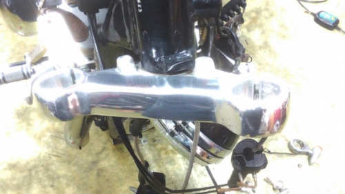 その気になれば新品以上にピカピカにできるのですが、年式相応に他の部分もやれているので、良く言えば味が出ているのでここだけ輝いてもバランスが悪いんですね・・・